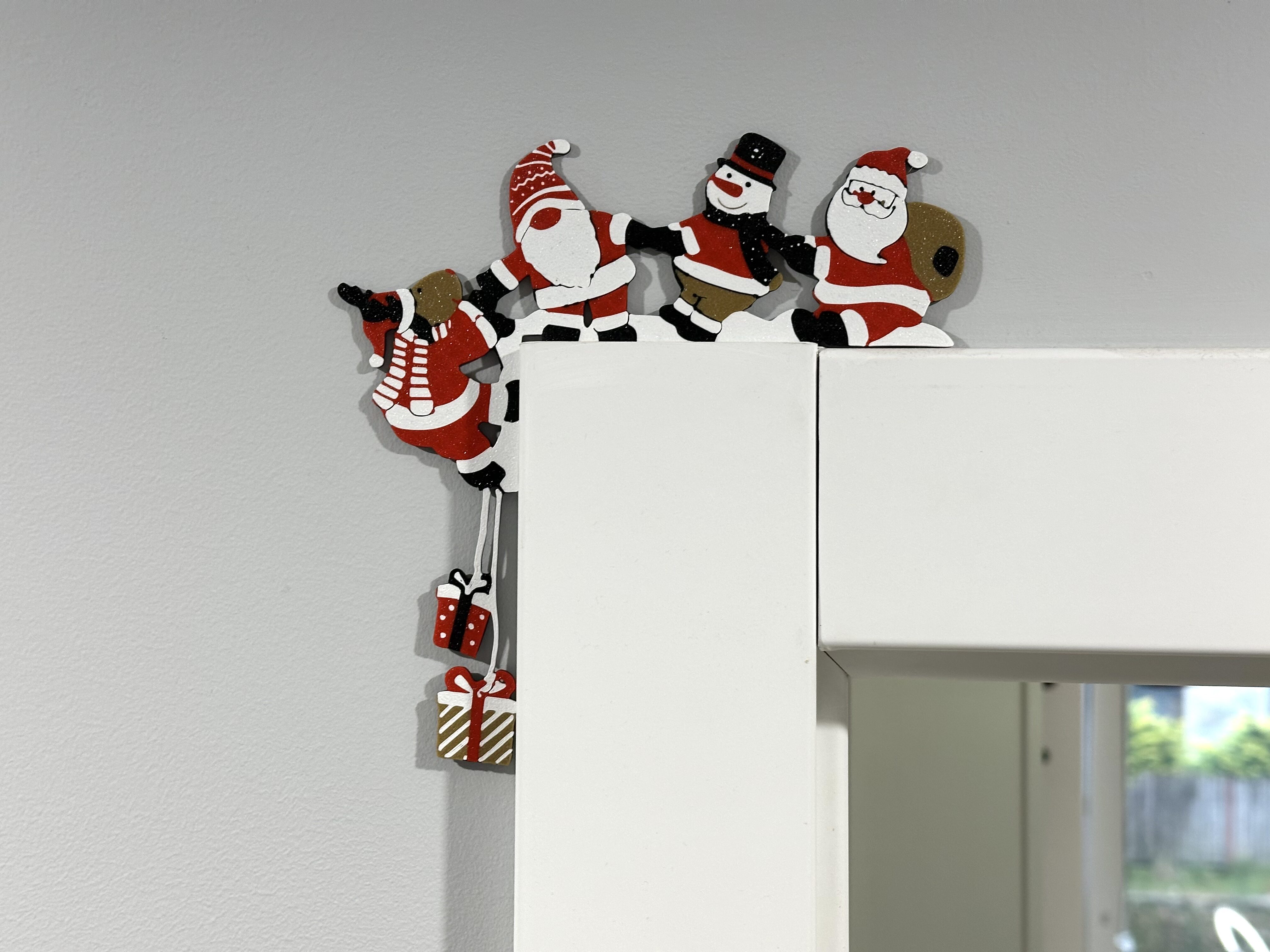 Wprowadź radosny akcent świąt do swojego domu z tą wyjątkową dekoracją na drzwi! Ta urocza ozdoba z wesołymi świątecznymi postaciami i prezentami wniesie do Twojego wnętrza niepowtarzalny, świąteczny klimat.