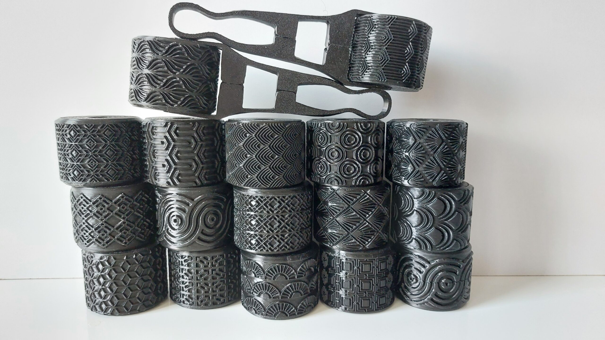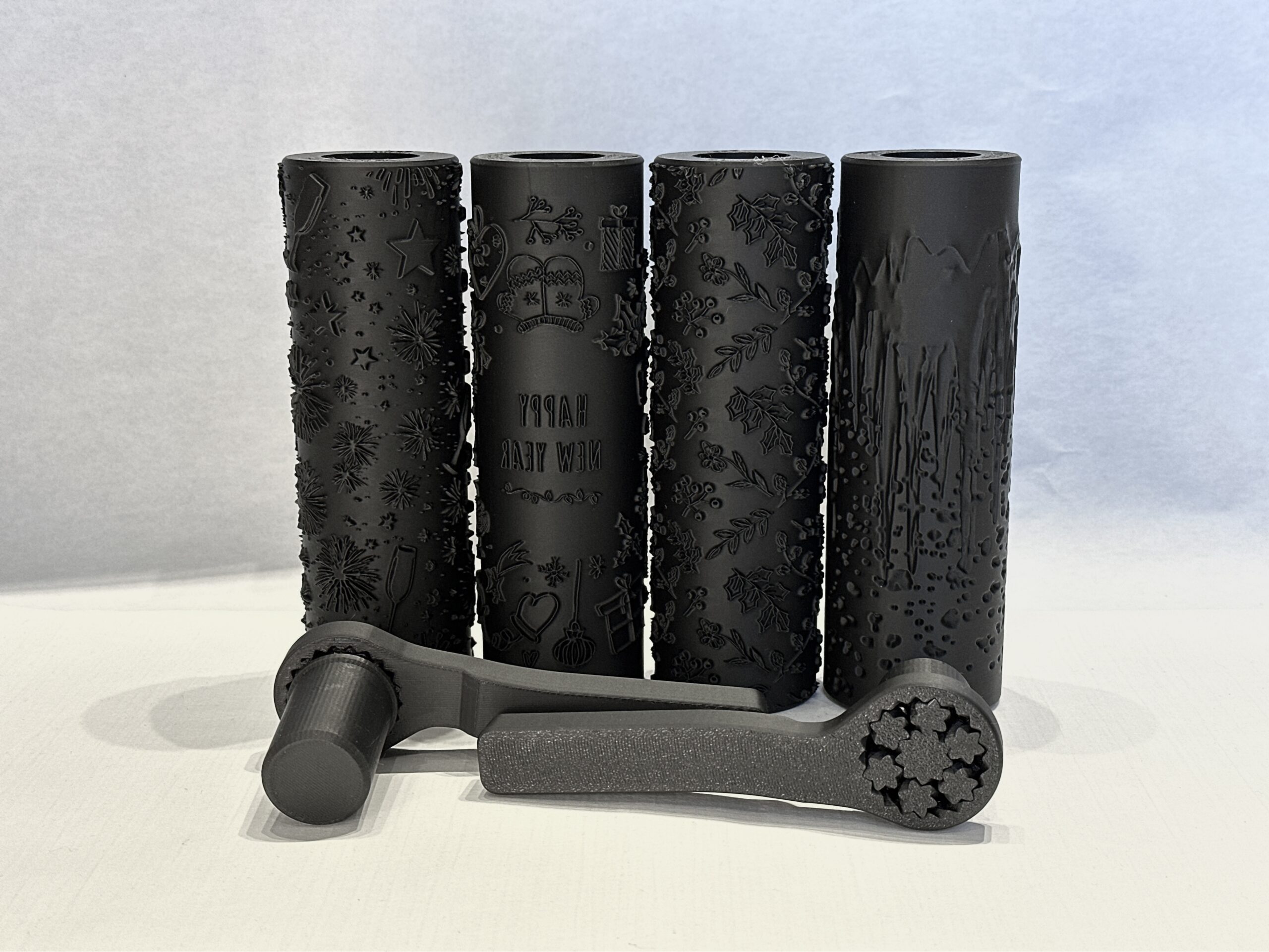 Wałki dekoracyjne to doskonałe narzędzie do zdobienia ceramiki, gliny i mas plastycznych. Dzięki precyzyjnie wykonanym wzorom w technologii druku 3D, można w prosty sposób nanosić efektowne zdobienia na powierzchnie.