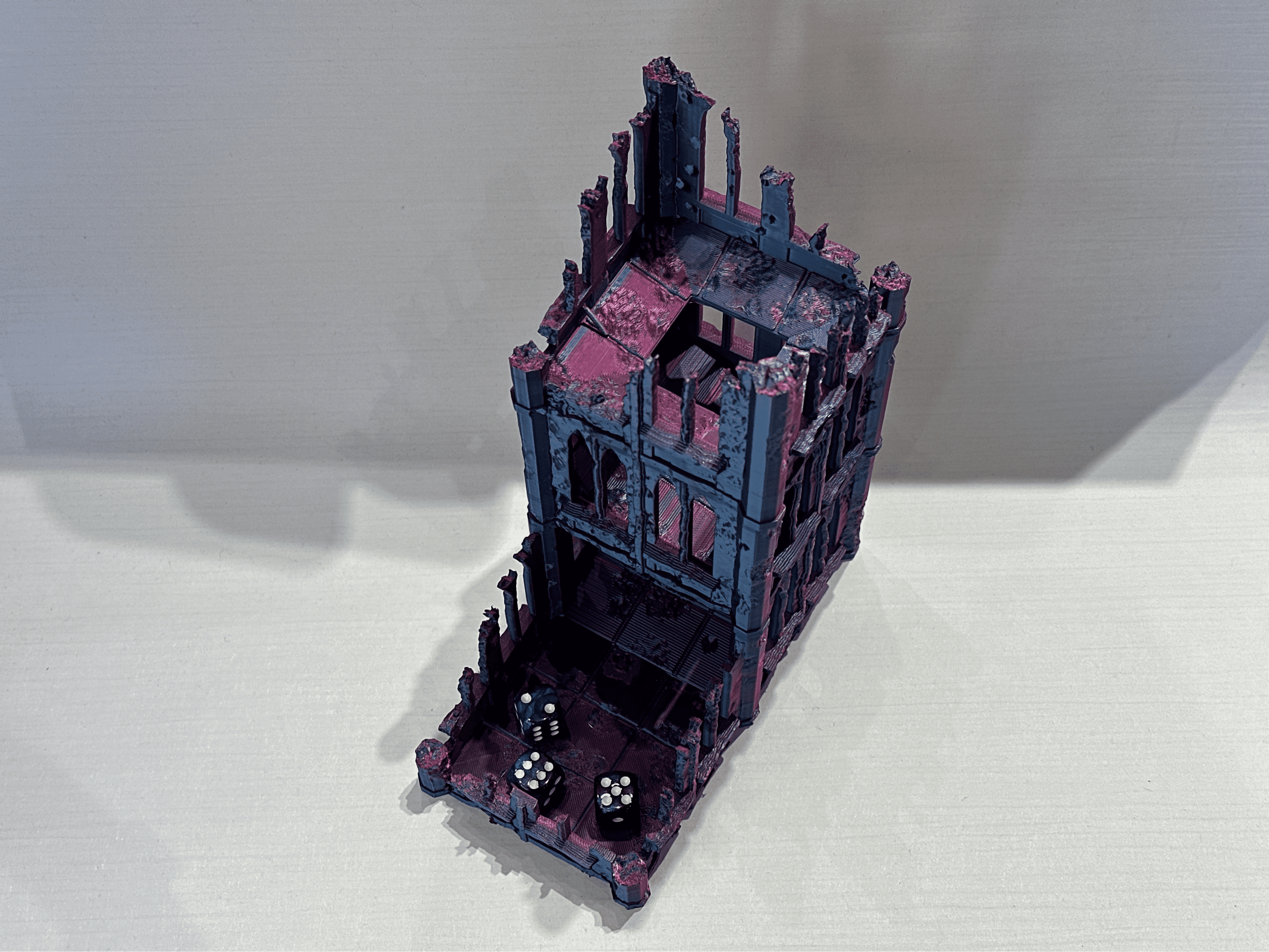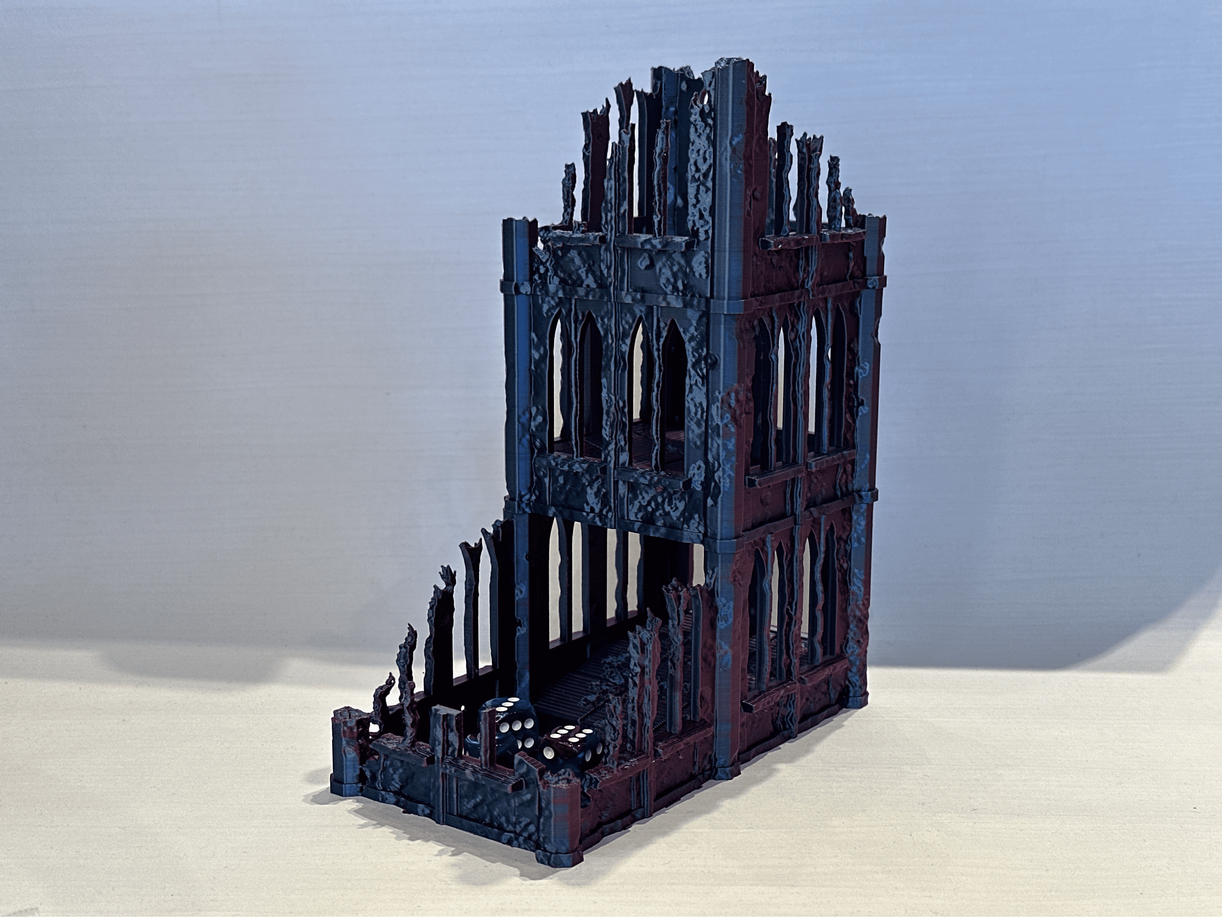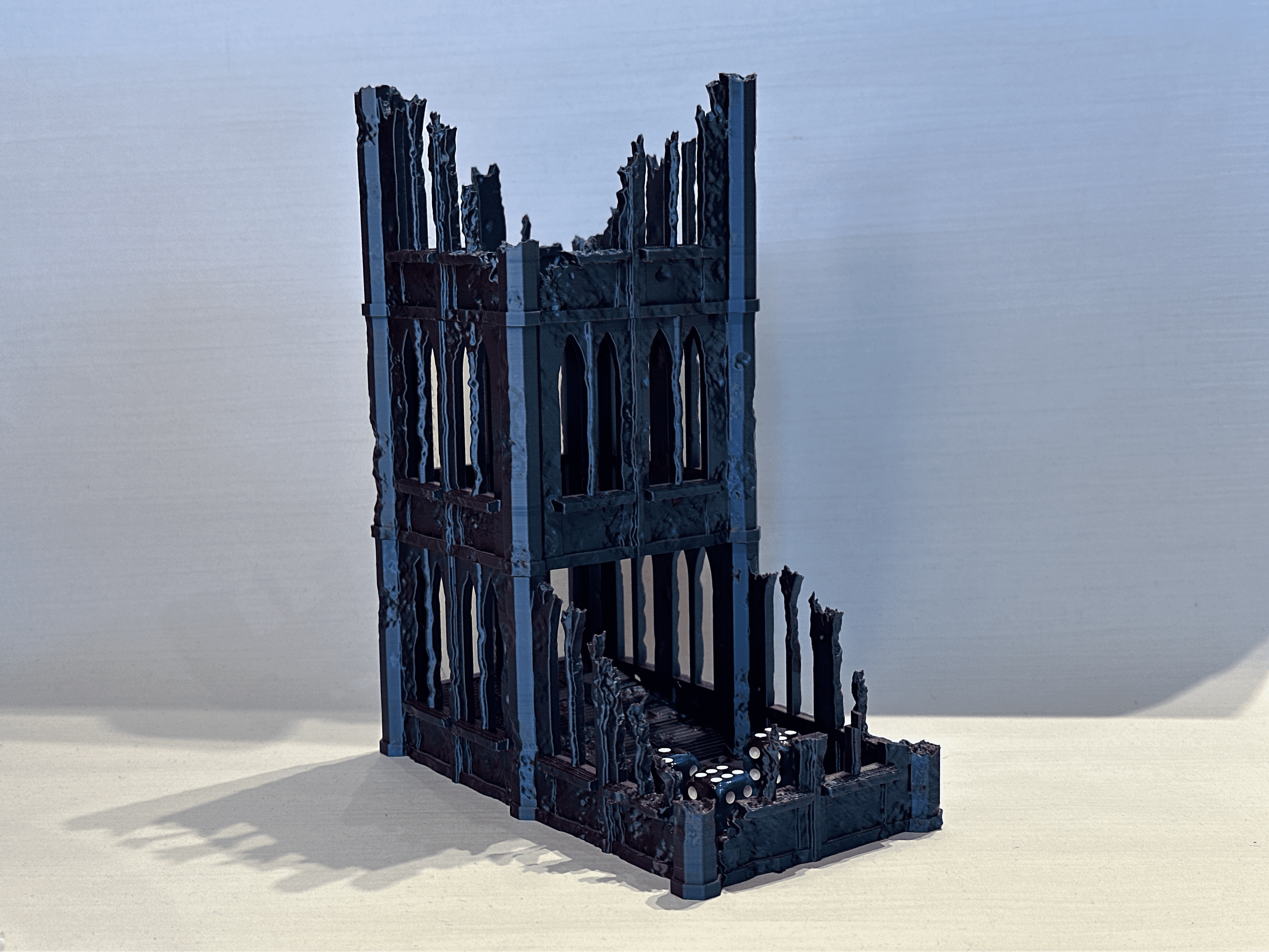 Gotyckie Ruiny przyciągają wzrok zdobieniami, strzelistymi łukami i detalami, stając się nie tylko praktycznym narzędziem, ale prawdziwą ozdobą stołu do gry. Precyzyjnie zaprojektowana konstrukcja gwarantuje uporządkowane i sprawiedliwe rzuty, idealnie komponując się z klimatem gier RPG i fantasy.
