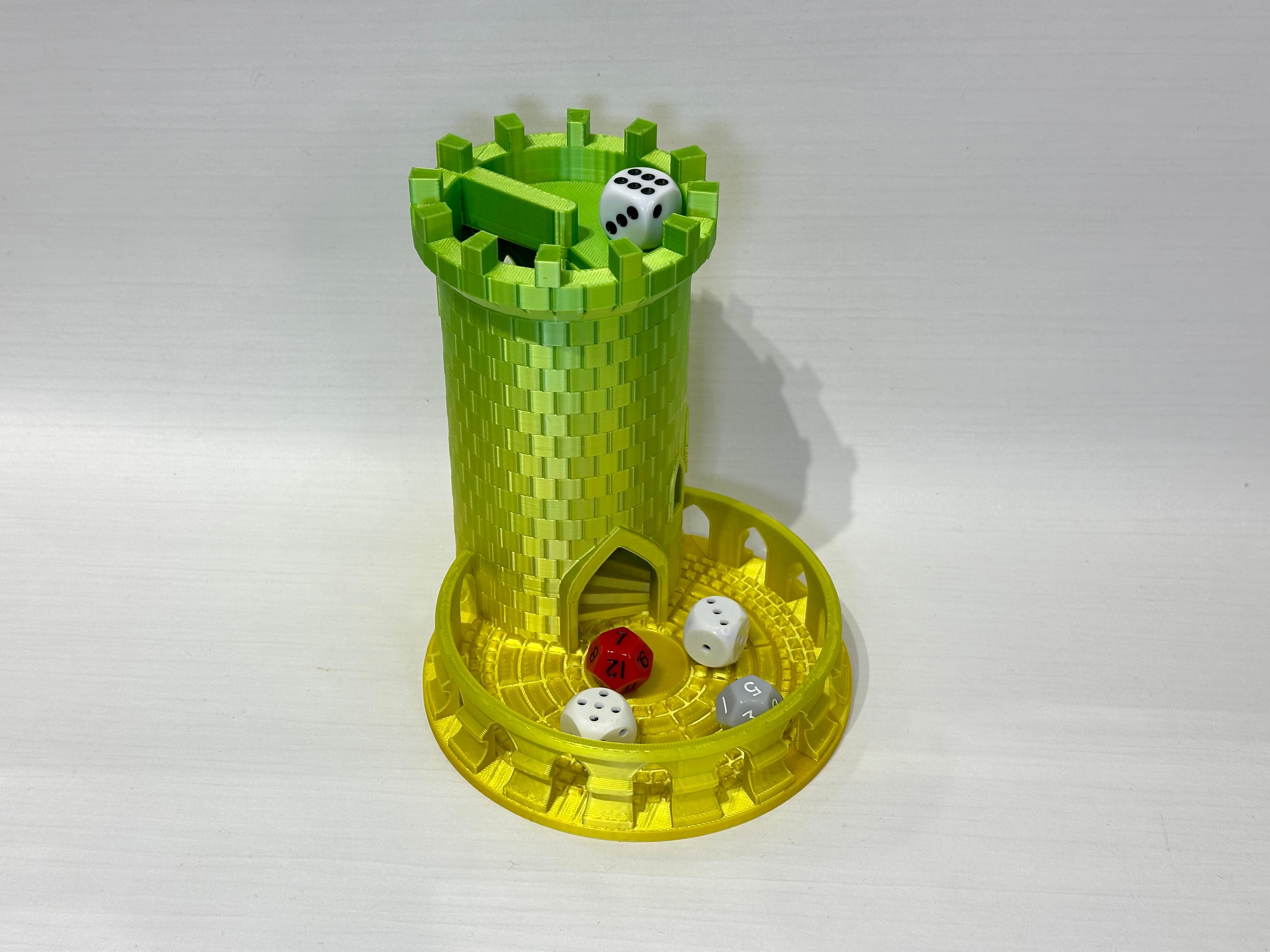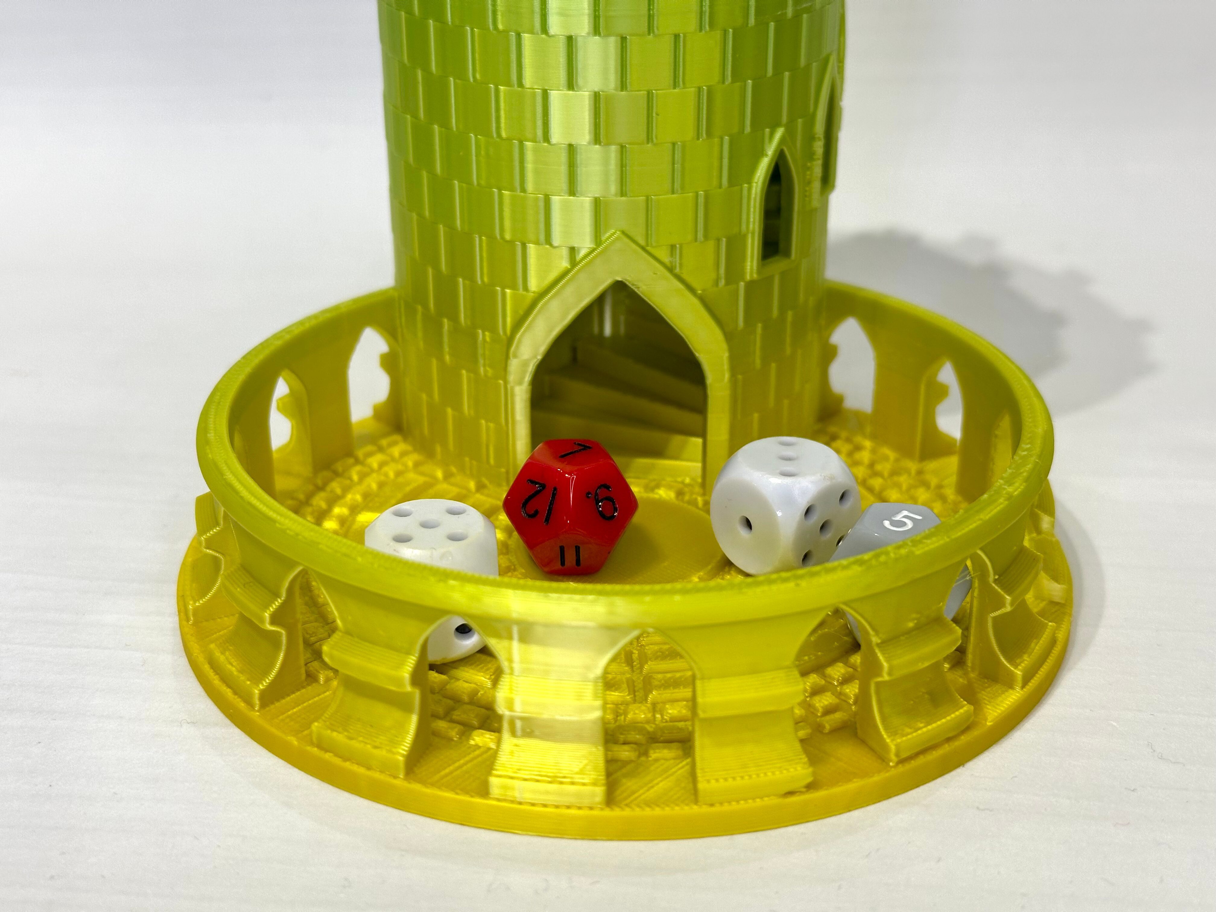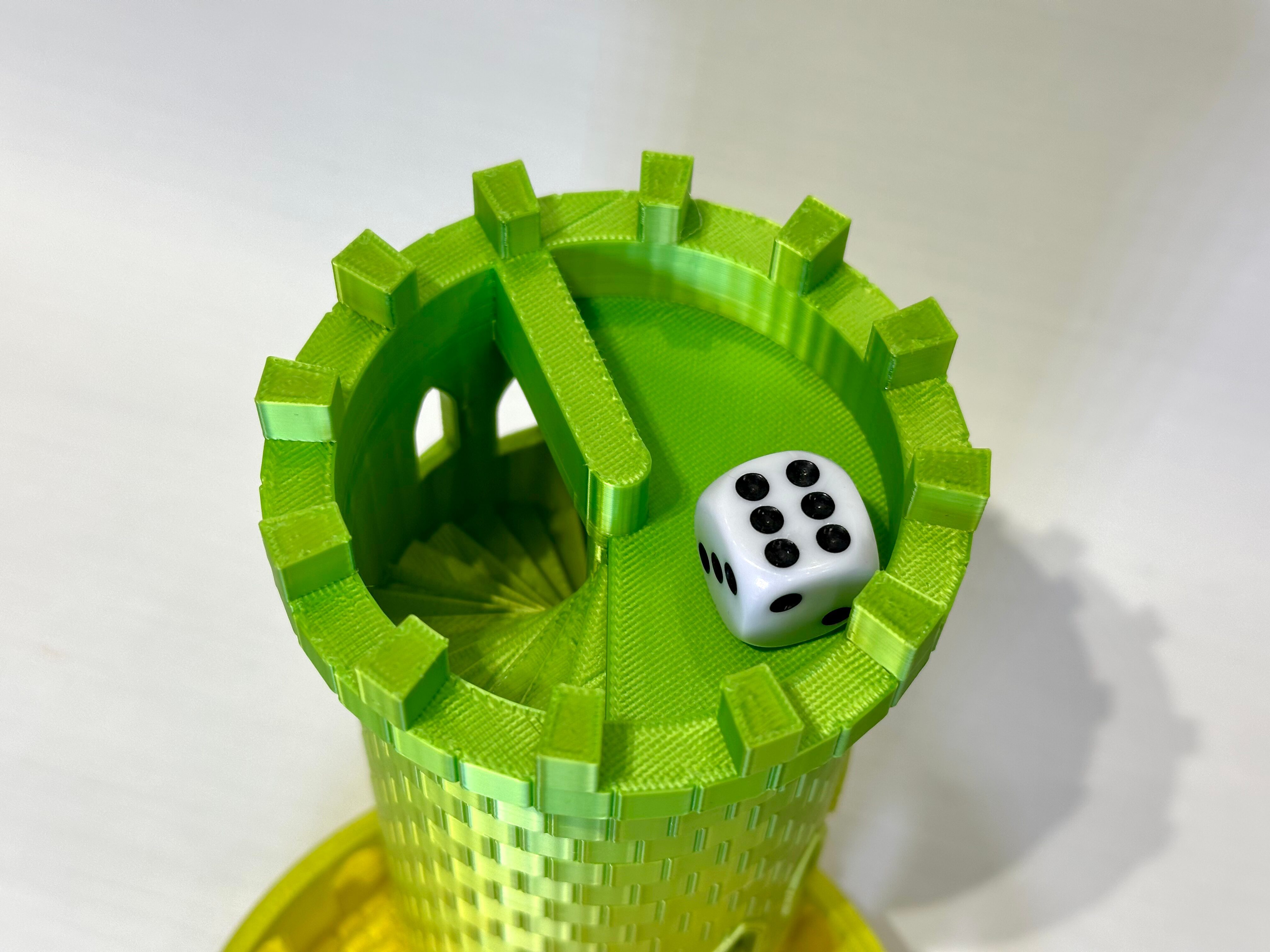 Wykonana w technologii druku 3D wieża skutecznie zapobiega kościom spadającym ze stołu i eliminuje problem nierównych rzutów. Jej elegancki design sprawia, że będzie efektownym dodatkiem do każdej gry planszowej.